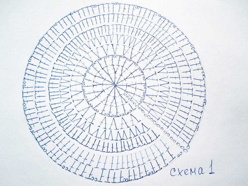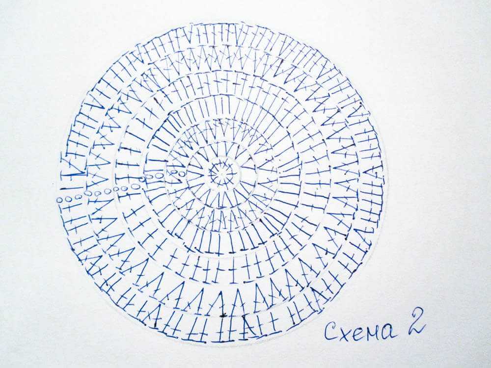 По схеме номер 1 вяжется клапан для сумки. Вязание начинается с кольца амигуруми. В кольцо набираем 12 ССН, во втором ряду делаем 12 прибавок из ССН. В последнем ряду вяжем в две ВП по 5 ССН – получится арка.