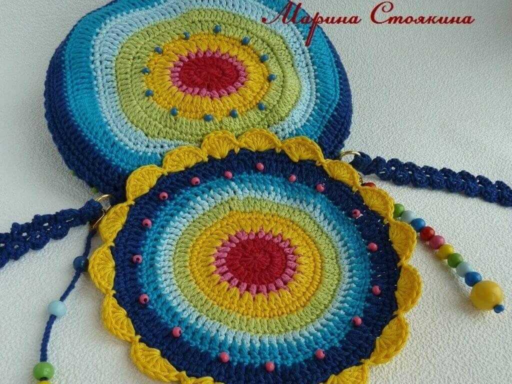 Яркая летняя сумочка, которой будет рада и маленькая принцесса, и девушка. Здесь может быть море вариантов: можно сделать разноцветный кошелёк, или сумку на плечо. Для изделия подойдут любые остатки ниток, бусины, кружева – в любых комбинациях. Всё зависит от вашей фантазии. Мы постарались сделать схемы и мастер-класс подробнее, чтобы даже начинающей мастерице было понятно, как вязать такую вещь.