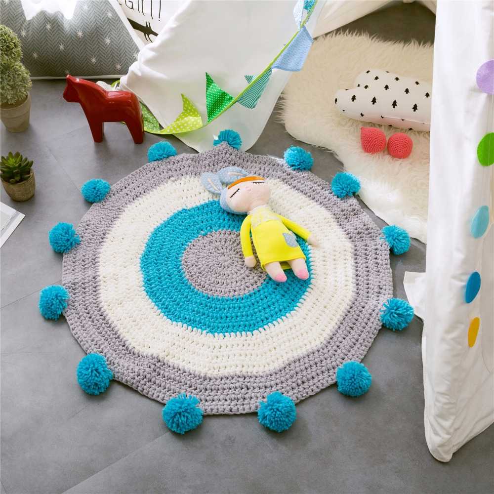 Интересно смотрятся вязаные крючком коврики в детской комнате. Это место, где можно дать свободу фантазии и выполнить нестандартные модели, а не только классический круг. Схемы для вязания и идеи есть в свободном доступе в интернете.