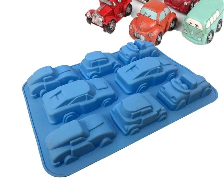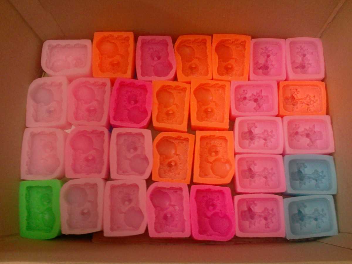 Очень распространены, так как их используют в качестве форм для выпечки или для льда. Материал – пищевой силикон. Продаются как с одинаковыми силуэтами, так и с абсолютно разными изображениями на одном планшете. Большим плюсом силиконовых форм является удобство вынимания из них мыла – благодаря гибкости оно буквально вылетает из сосуда.