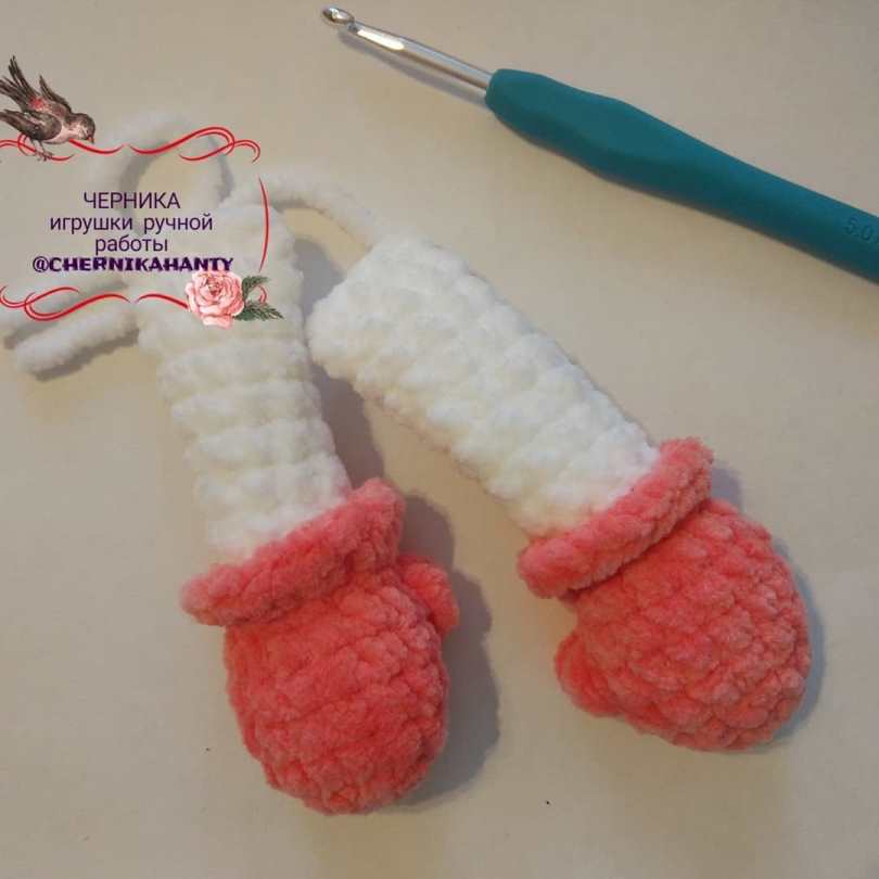 - 5 ряд: 5 СБН, 1 пышный столбик (это будет большой пальчик), 6 СБН;
