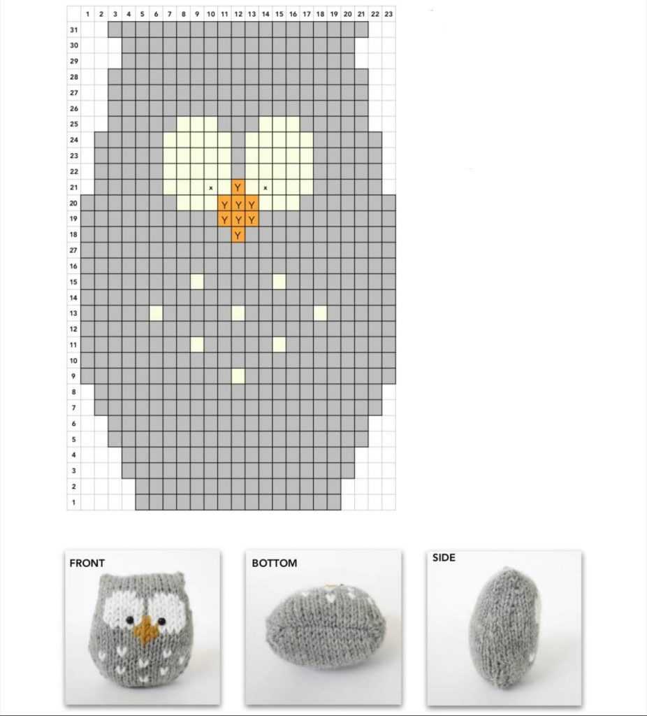 Прилагаем фото схемы для начала вязания игрушки совы, с подробным описанием петель.