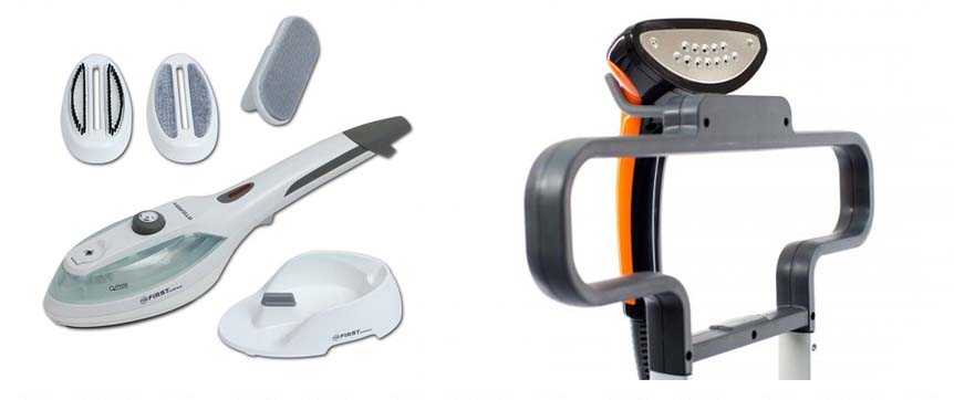 Обычно отпариватель имеет несколько насадок для разных типов тканей. Некоторые виды устройств могут комплектоваться вешалкой для одежды, щеткой для снятия ворса и защитной варежкой.