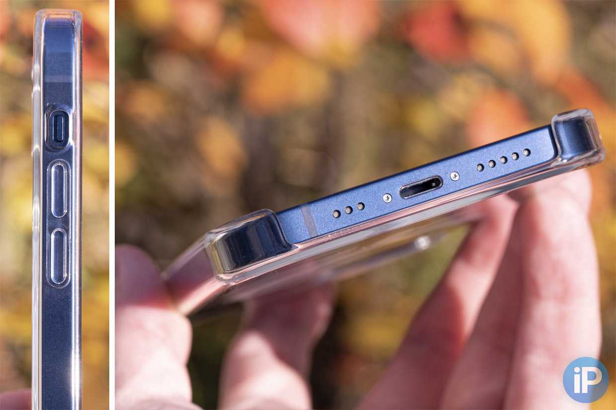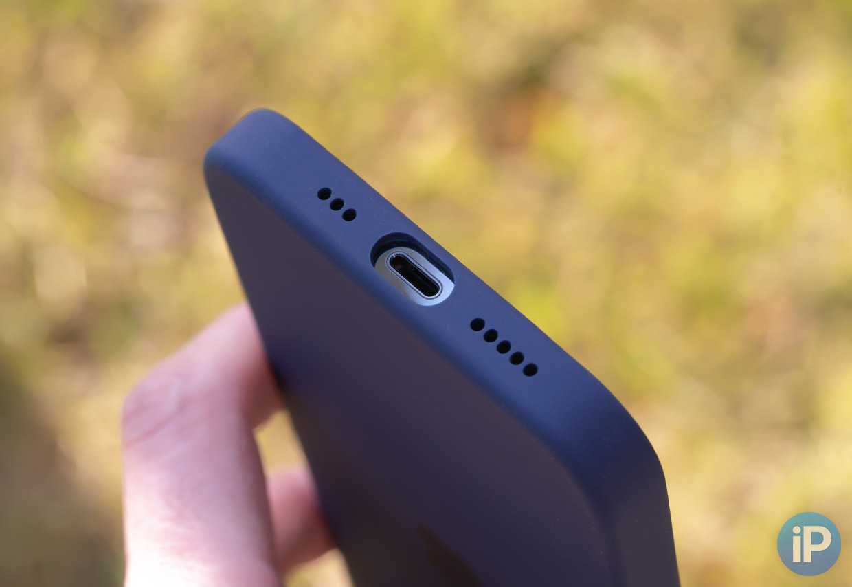 Внизу есть вырезы под динамики и под порт Lightning. Причём последний – очень крупный, явно для совместимости с коннекторами разных форм и размеров. Полезный момент для доков и переходников.