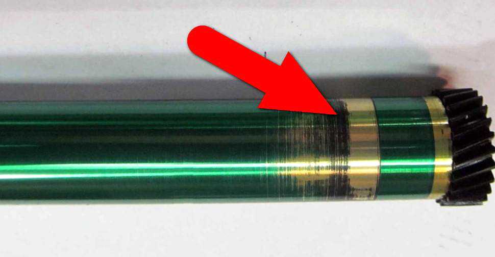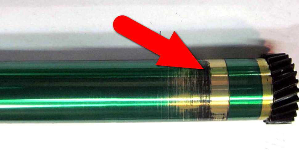 При износе фотовала полосы будут печататься на листке сбоку: справа, слева, в зависимости от стороны износа, или с обоих одновременно.