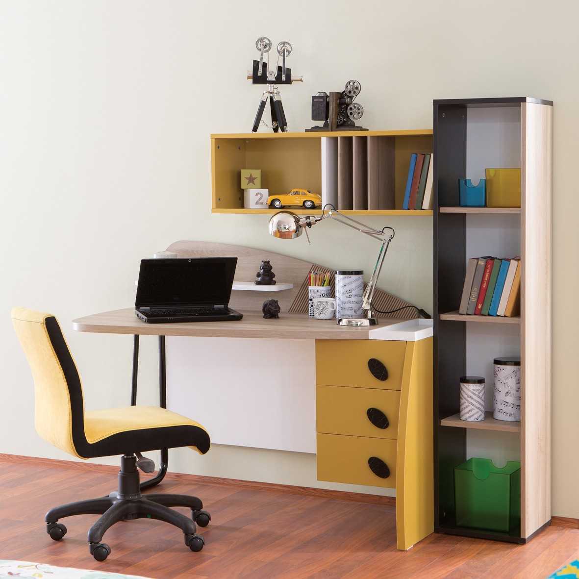 Возможно, потребуются системы полок или даже несколько угловых стеллажей, так как кроме учебной литературы, ребенку понадобятся обычные книжки, которые нужно где-то размещать.